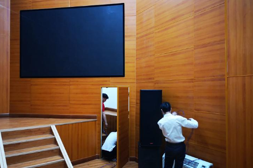 东昌宾馆大礼堂,工作人员紧张忙碌。