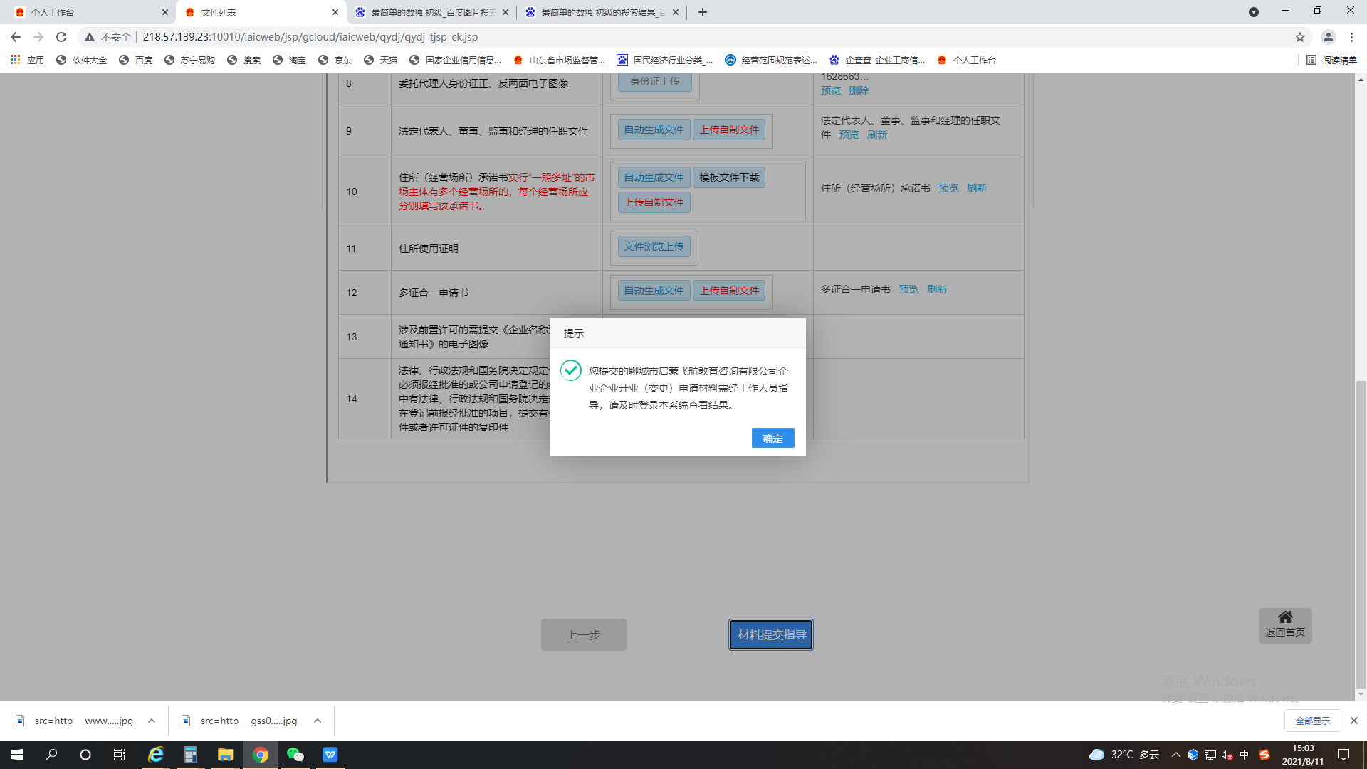 15:03企业登记外网申报完成