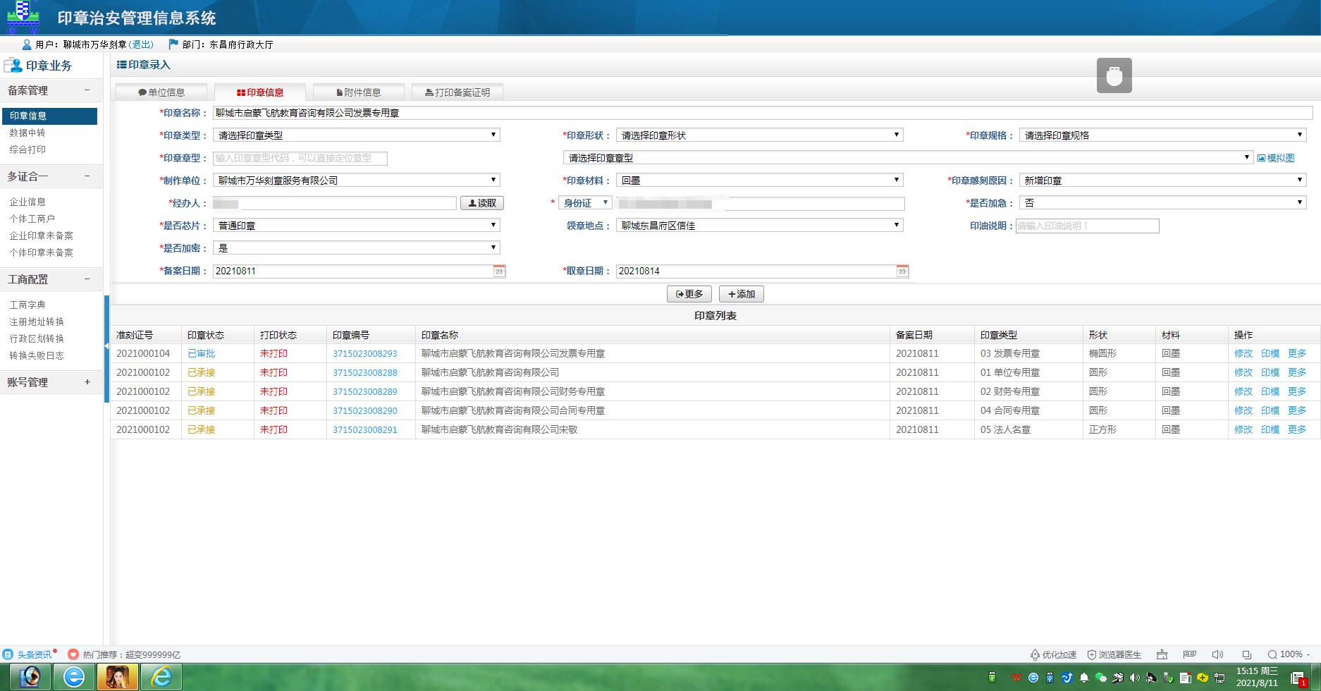 15:05印章刻制完成