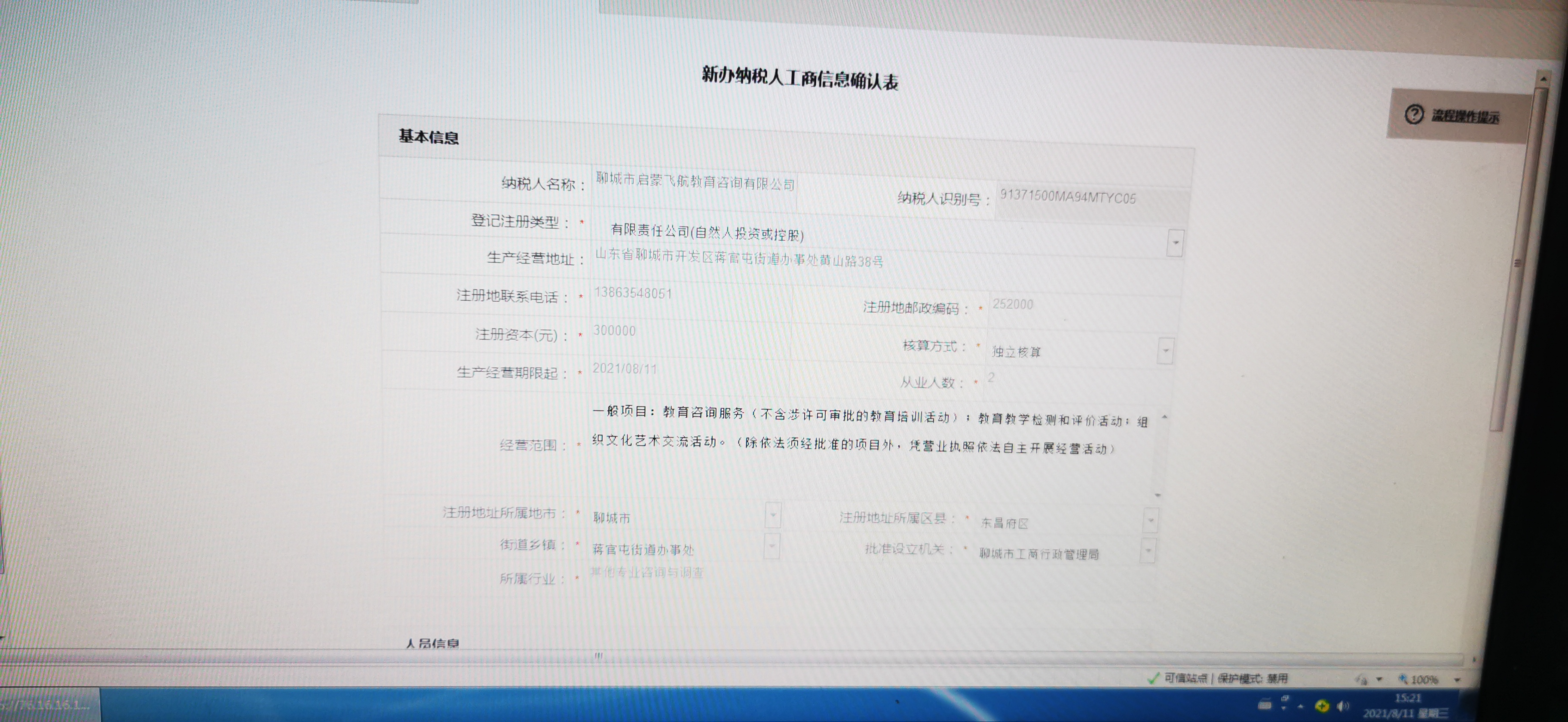 15:21税务登记完成