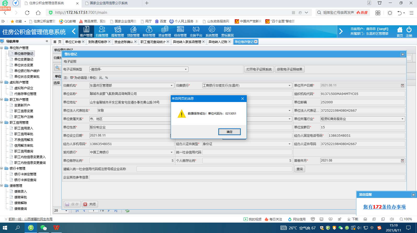 15:19公积金登记完成